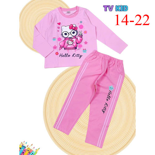 A479985 - Bộ dài bé gái thun cotton 4c in Hello Kitty_Size 14-22