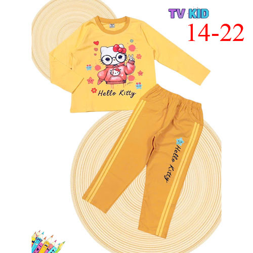 A479992 - Bộ dài bé gái thun cotton 4c in Hello Kitty_Size 14-22
