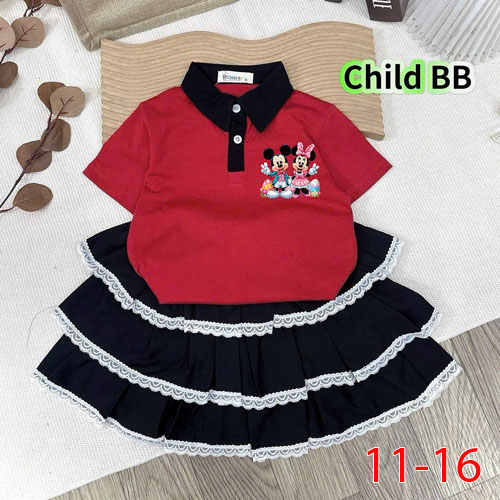 A480065 - Set váy siêu xinh cho bé áo thun cổ trụ in 2 Mickey chân váy lụa hàn 3 tầng phối ren_Size