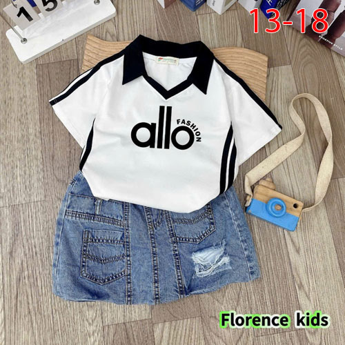 A480193 - Set bé gái áo chất thun cotton 4c cổ trụ in alo chân váy bí was rách_Size 13-18