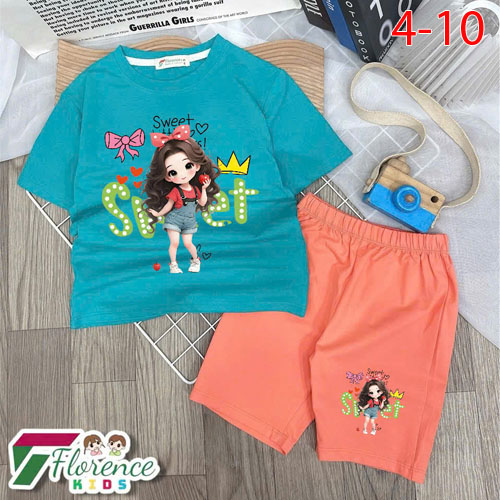 A480211 - Bộ ngố xinh yêu cho bé gái chất thun cotton 4c in cô bé SWEET_Size 4-10