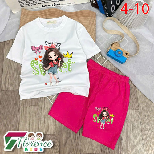 A480212 - Bộ ngố xinh yêu cho bé gái chất thun cotton 4c in cô bé SWEET_Size 4-10