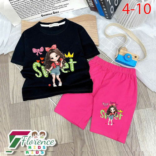 A480214 - Bộ ngố xinh yêu cho bé gái chất thun cotton 4c in cô bé SWEET_Size 4-10