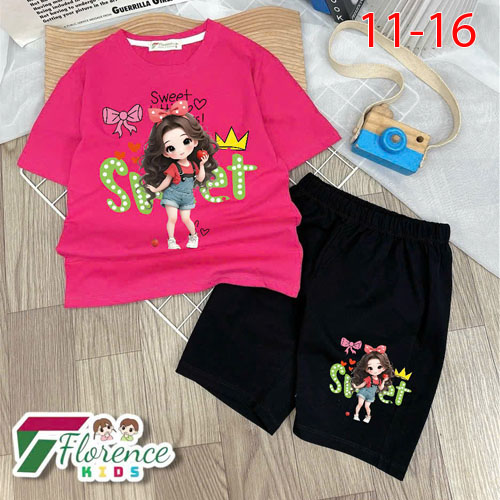 A480216 - Bộ ngố xinh yêu cho bé gái chất thun cotton 4c in cô bé SWEET_Size 11-16