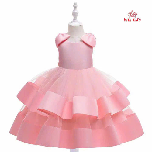 A480353 - Váy công chúa 2 tầng nơ vai 2 lớp luới,lớp phi mờ,lót Katê may lộn nguyên đầm_Size 3-10