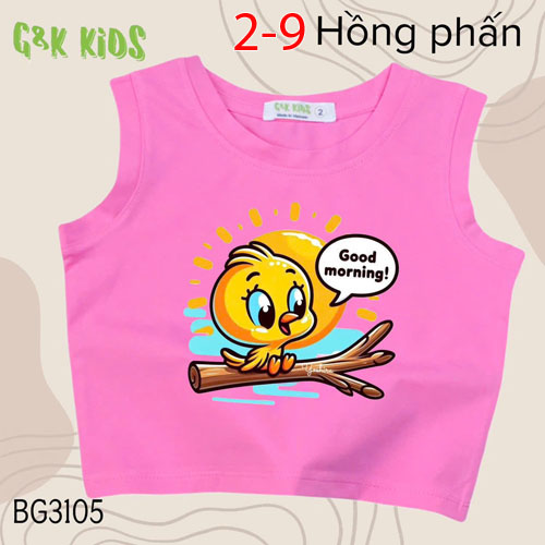 A480415 - Áo sát nách bé gái chất thun coton 4c in chim con Good morning_Size 2-9