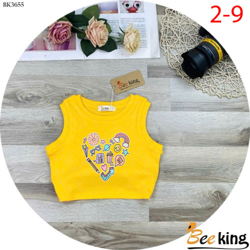 A481333 - Áo bé gái croptop trái tim chất liệu borip loại 1_Size 2-9