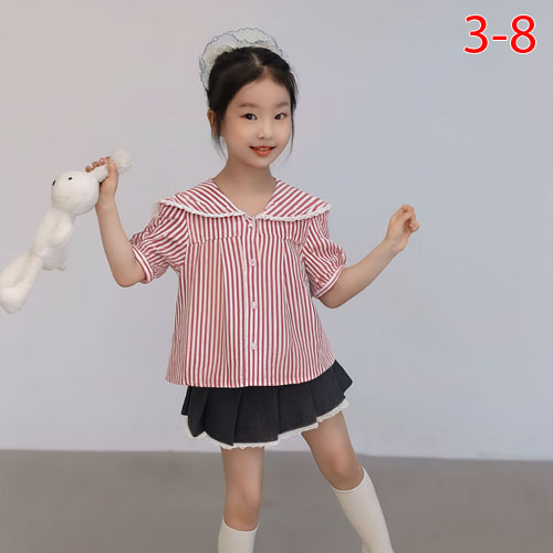 A481886 - Nexxi Win Win set váy thủy thủ áo sơ mi sọc cotton viền ren, lá cổ thủy thủ chân vá