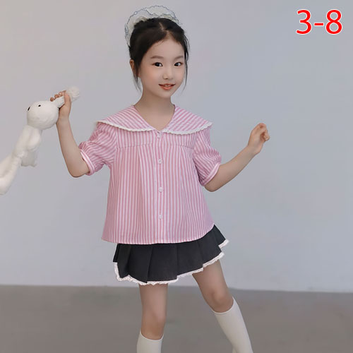 A481887 - Nexxi Win Win set váy thủy thủ áo sơ mi sọc cotton viền ren, lá cổ thủy thủ chân vá