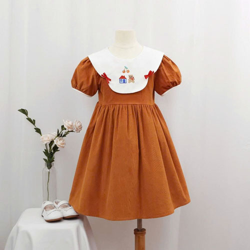 A483525 - Nexxi Win Win đầm xòe dáng babydoll đính phụ kiện nơ thêu hình gấu và nhà_Size 6M,9M,1-8T