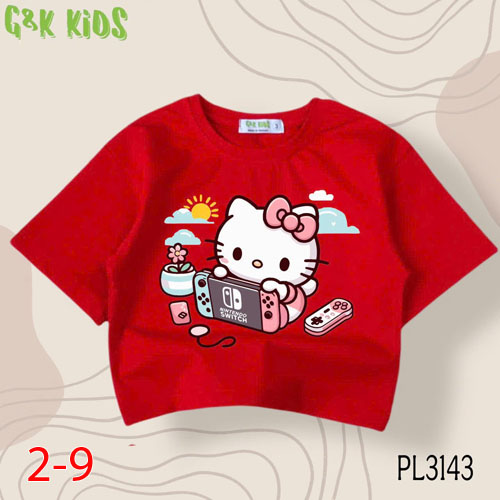 A483537 - Áo bé gái phom lững chất thun coton 4c in Kitty chơi game_Size 2-9