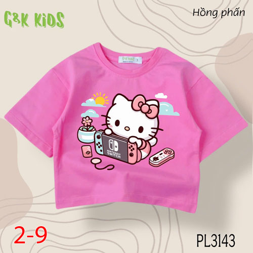 A483541 - Áo bé gái phom lững chất thun coton 4c in Kitty chơi game_Size 2-9