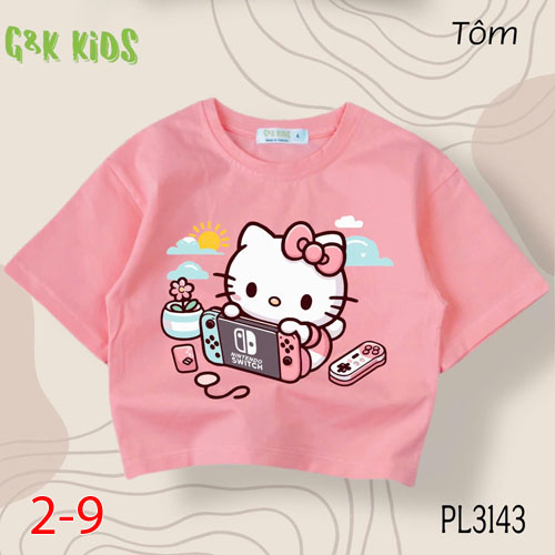 A483543 - Áo bé gái phom lững chất thun coton 4c in Kitty chơi game_Size 2-9