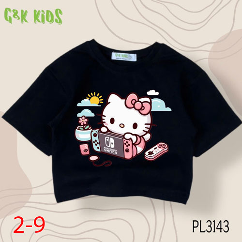 A483544 - Áo bé gái phom lững chất thun coton 4c in Kitty chơi game_Size 2-9