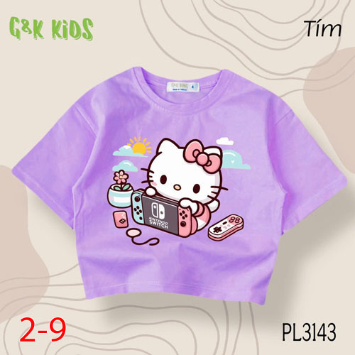 A483548 - Áo bé gái phom lững chất thun coton 4c in Kitty chơi game_Size 2-9