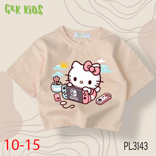 A483552 - Áo bé gái phom lững chất thun coton 4c in Kitty chơi game_Size 10-15