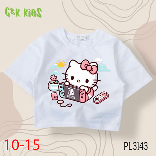 A483554 - Áo bé gái phom lững chất thun coton 4c in Kitty chơi game_Size 10-15