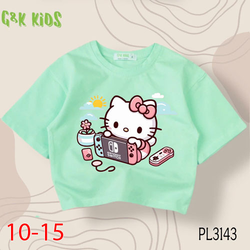 A483557 - Áo bé gái phom lững chất thun coton 4c in Kitty chơi game_Size 10-15