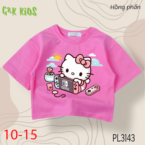 A483558 - Áo bé gái phom lững chất thun coton 4c in Kitty chơi game_Size 10-15