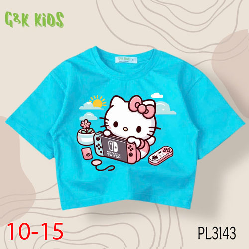 A483560 - Áo bé gái phom lững chất thun coton 4c in Kitty chơi game_Size 10-15