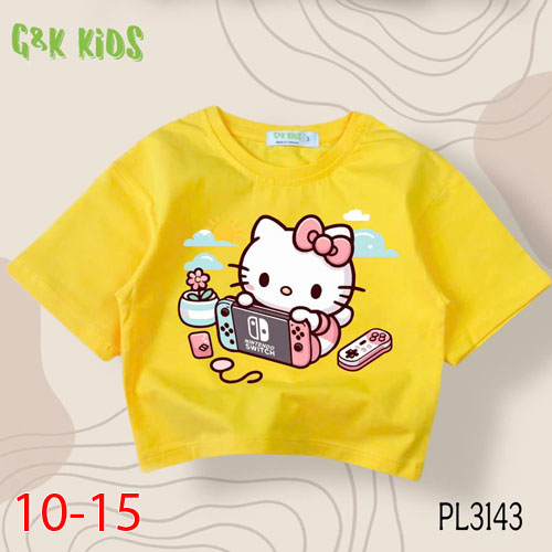 A483561 - Áo bé gái phom lững chất thun coton 4c in Kitty chơi game_Size 10-15