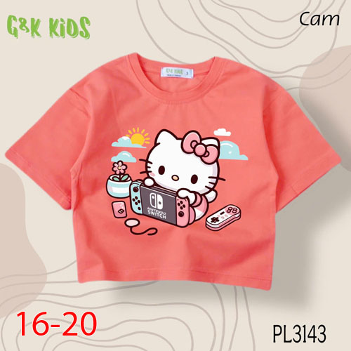 A483563 - Áo bé gái phom lững chất thun coton 4c in Kitty chơi game_Size 16-20