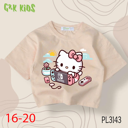 A483565 - Áo bé gái phom lững chất thun coton 4c in Kitty chơi game_Size 16-20