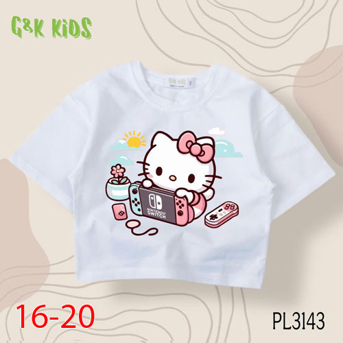 A483567 - Áo bé gái phom lững chất thun coton 4c in Kitty chơi game_Size 16-20