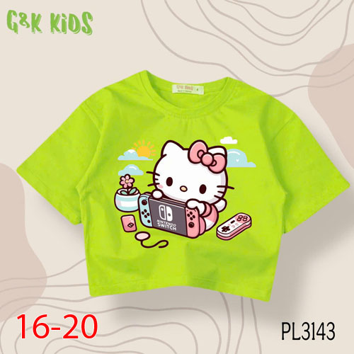 A483572 - Áo bé gái phom lững chất thun coton 4c in Kitty chơi game_Size 16-20