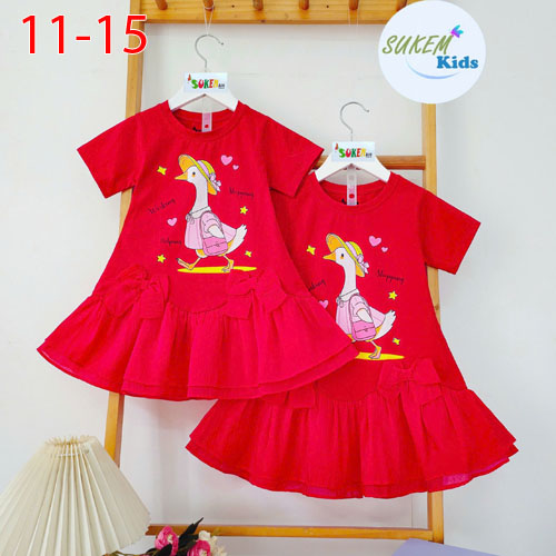 A483947 - Đầm vịt siêu cưng cho bé gái may ngắn tay thun coton 4c phối woan tơ ánh kim 2 tầng cuốn b