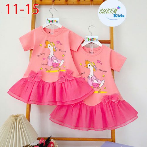 A483948 - Đầm vịt siêu cưng cho bé gái may ngắn tay thun coton 4c phối woan tơ ánh kim 2 tầng cuốn b