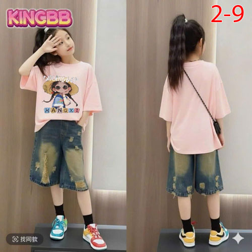 A484283 - Sét rin hottren cho mẹ bé áo chất cotton in cô bé quần rin lửng chất rin cotton_Size 2-9