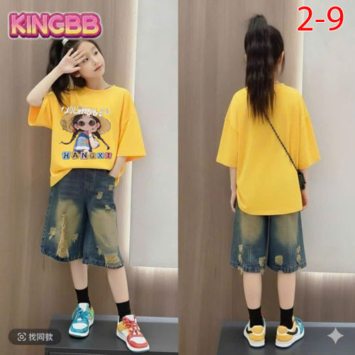 A484288 - Sét rin hottren cho mẹ bé áo chất cotton in cô bé quần rin lửng chất rin cotton_Size 2-9