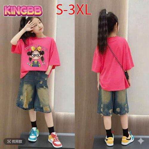 A484313 - Sét rin hottren cho mẹ bé áo chất cotton in cô bé quần rin lửng chất rin cotton_Size S-3XL