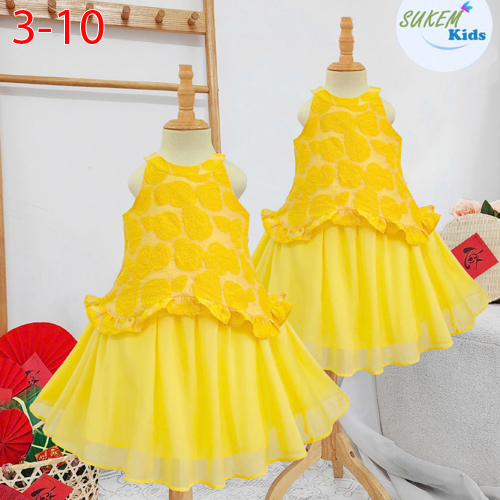 A484369 - Set áo cổ yếm hàng thiết kế cực xinh cho bé diện Tết chất gấm hoa dập nhập chân váy lụa án