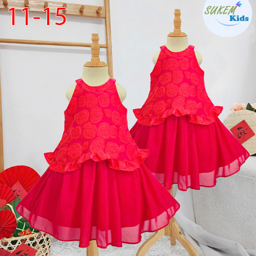 A484374 - Set áo cổ yếm hàng thiết kế cực xinh cho bé diện Tết chất gấm hoa dập nhập chân váy lụa án