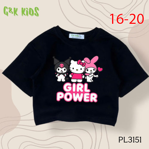 A484524 - Áo bé gái phom lững chất thun coton 4c in GIRL POWER_Size 16-20