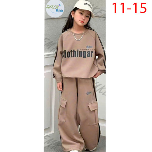 A484631 - Bộ dài tay da cá bé gái áo chạy dây viền thể theo in chữ nổi quần dài suông có dây bo rút