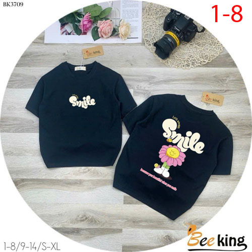 A484884 - Áo form rộng giấu quần Smile bông hoa thun cotton 4c_Size 1-8