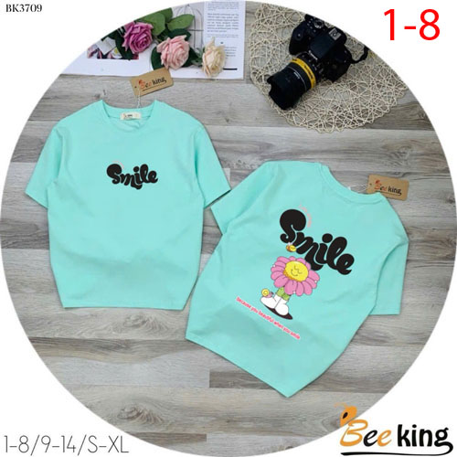 A484885 - Áo form rộng giấu quần Smile bông hoa thun cotton 4c_Size 1-8
