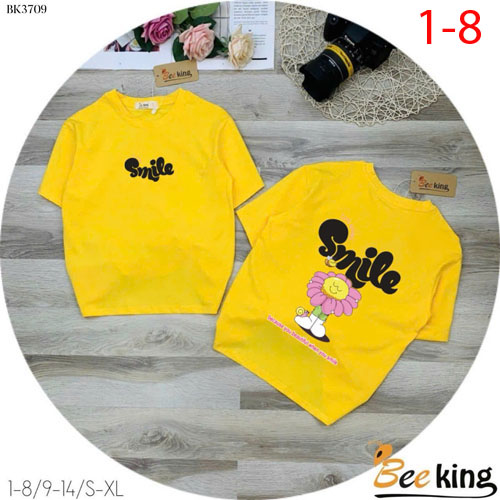 A484894 - Áo form rộng giấu quần Smile bông hoa thun cotton 4c_Size 1-8