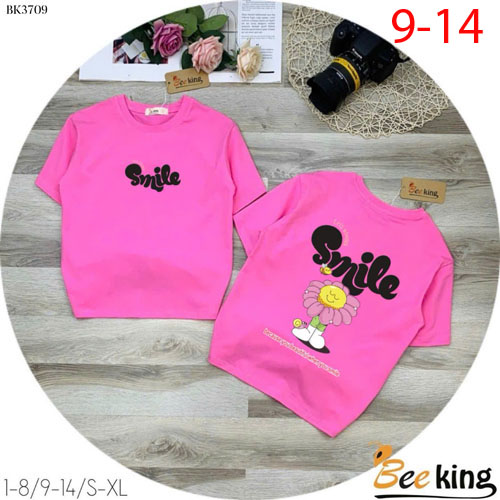A484900 - Áo form rộng giấu quần Smile bông hoa thun cotton 4c_Size 9-14