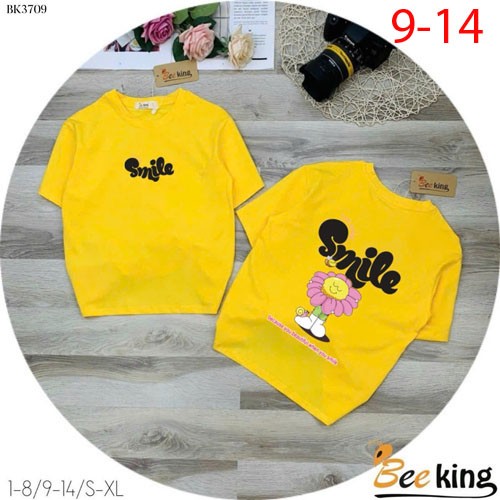 A484901 - Áo form rộng giấu quần Smile bông hoa thun cotton 4c_Size 9-14