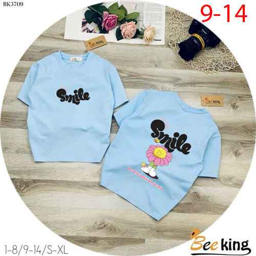 A484905 - Áo form rộng giấu quần Smile bông hoa thun cotton 4c_Size 9-14