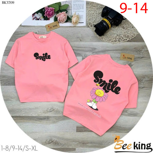 A484906 - Áo form rộng giấu quần Smile bông hoa thun cotton 4c_Size 9-14