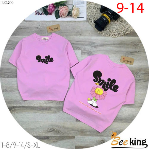 A484907 - Áo form rộng giấu quần Smile bông hoa thun cotton 4c_Size 9-14