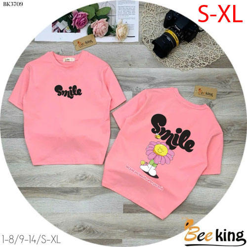 A484920 - Áo form rộng giấu quần Smile bông hoa thun cotton 4c_Size S-XL