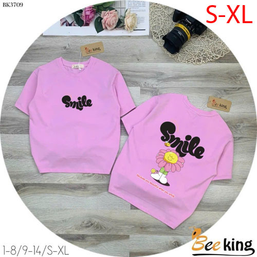 A484921 - Áo form rộng giấu quần Smile bông hoa thun cotton 4c_Size S-XL