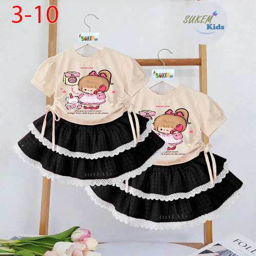 A484927 - Set thiết kế áo rút dây 2 bên dễ thương cưng xỉu tay phồng xinh in cô bé chân váy ren may