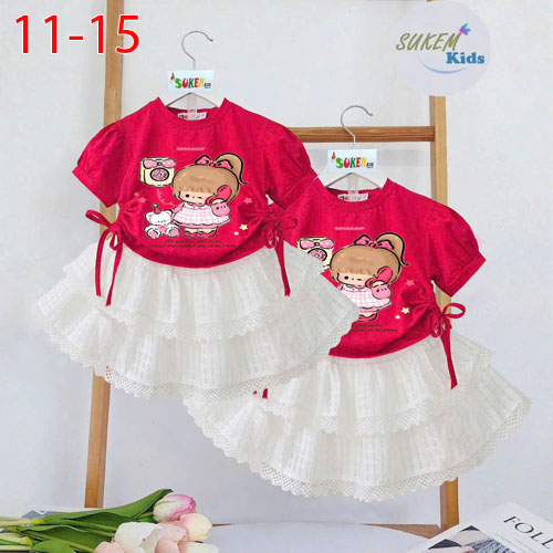 A484933 - Set thiết kế áo rút dây 2 bên dễ thương cưng xỉu tay phồng xinh in cô bé chân váy ren may